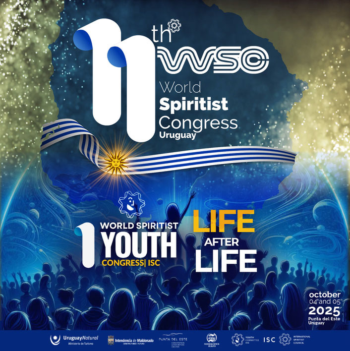 Le CEI (Conseil Spirite International) et la FEU (Fédération Spirite Uruguayenne), vous invitent à participer au 11e CEM (Congrès Spirite Mondial - La Vie après la Vie). Rejoignez-nous les 4 et 5 octobre 2025 au Centre de Congrès de Punta del Este, Maldonado - Uruguay!